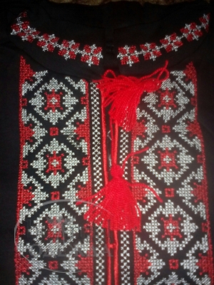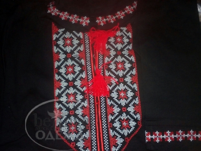 Вышиванка с длинным рукавом для мальчика с бело-красной вышивкой (МА-ВЫ-6158)